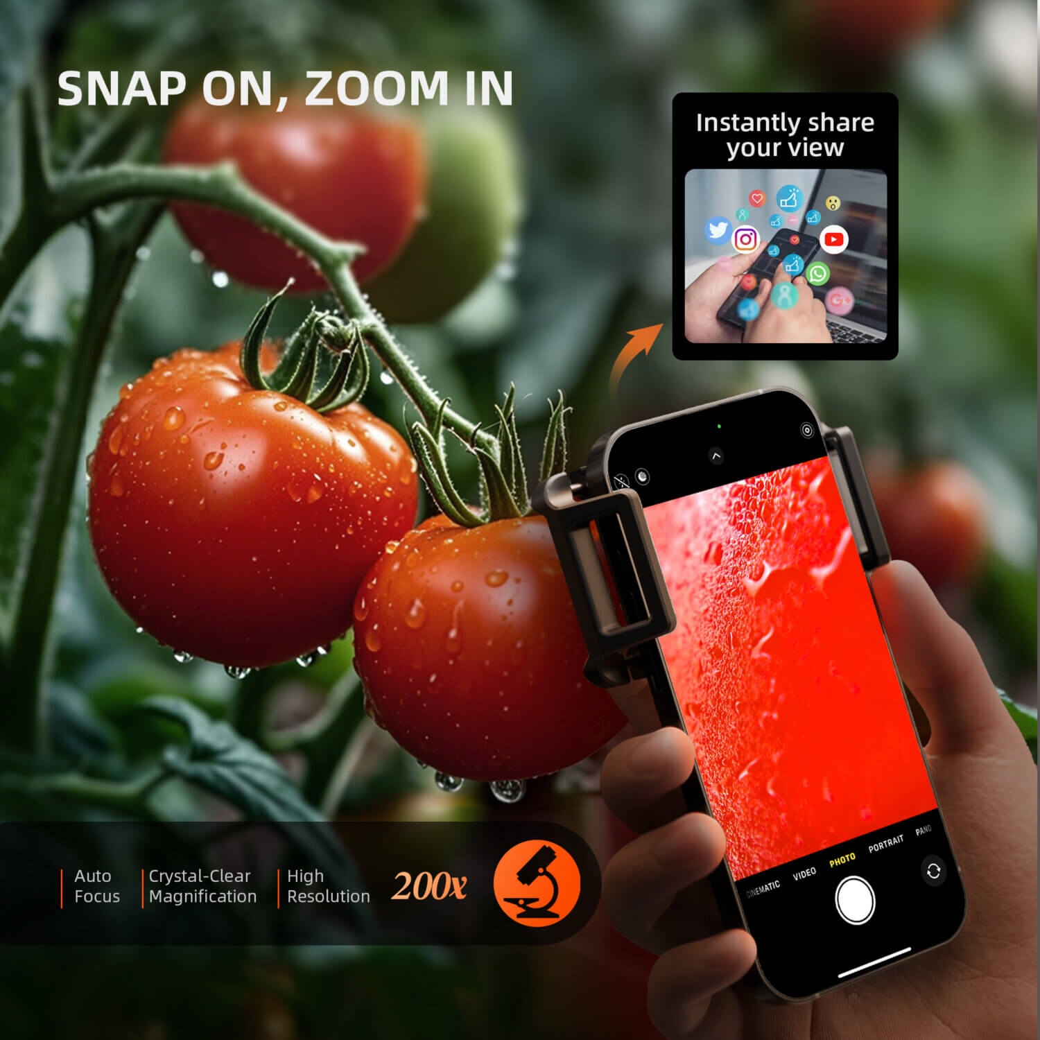- 200-fache HD-Vergrößerung: Trichome, Blattoberflächen, Schädlinge oder Nährstoffmängel werden gestochen scharf sichtbar