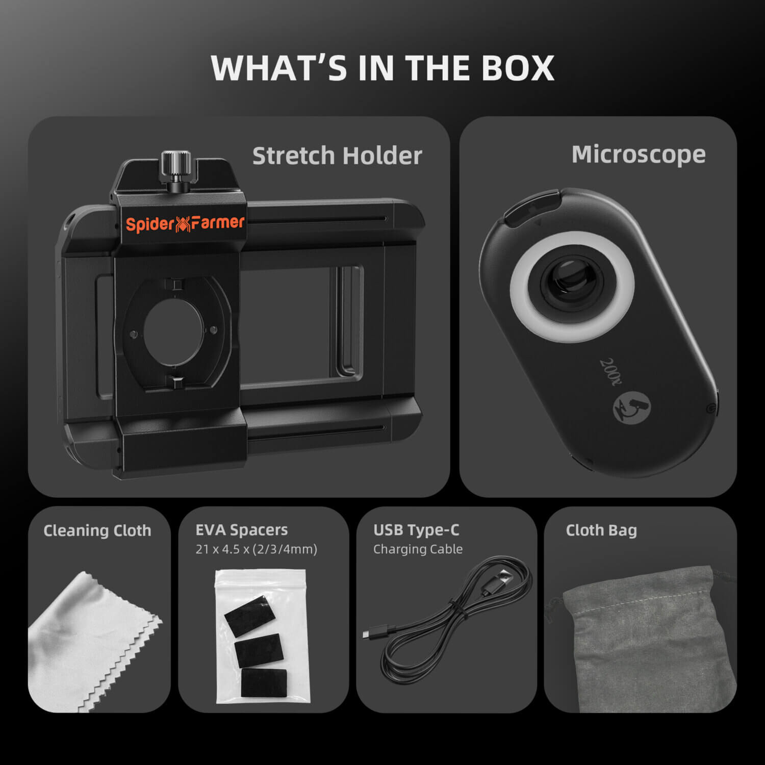 - 1× Spider Farmer 200X Mikroskop